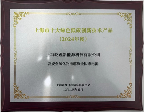 2023创蓝碳中和先锋奖获奖企业之一屹锂科技全固态电池荣获上海“十大绿色低碳创新技术产品”称号