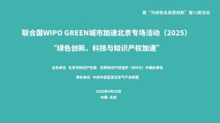 2025年4月29日,由北京市知识产权局与世界知识产权组织中国办事处共同主办,中关村创蓝清洁空气产业联盟(BCAA)承办的 WIPO GREEN 城市加速北京专场活动(2025)—— “绿色创新、科技与知识产权加速” 在北京举行。活动围绕绿色技术创新与知识产权保护展开深入探讨,吸引了众多行业专家、企业代......